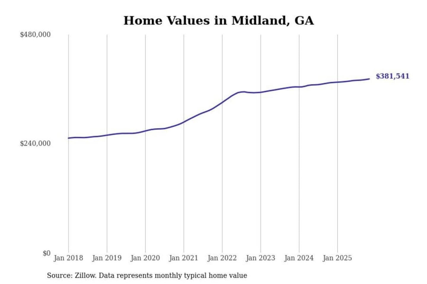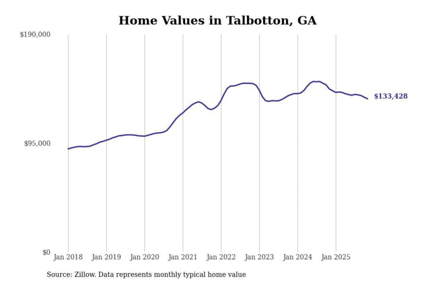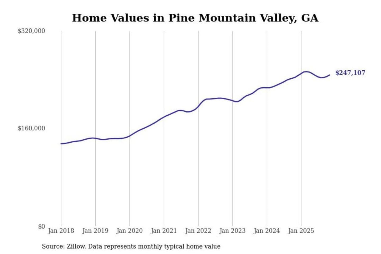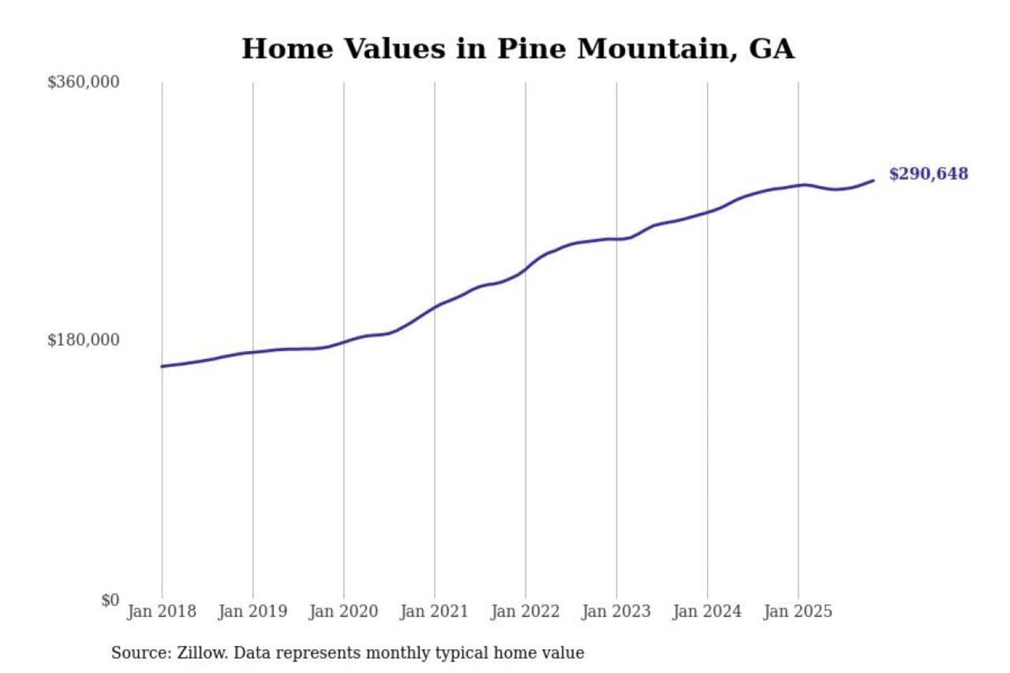 Stacker compiled a list of cities with the most expensive homes in the Columbus, GA-AL metro area using data from Zillow. Charts show the monthly typical home value since January 2018.
