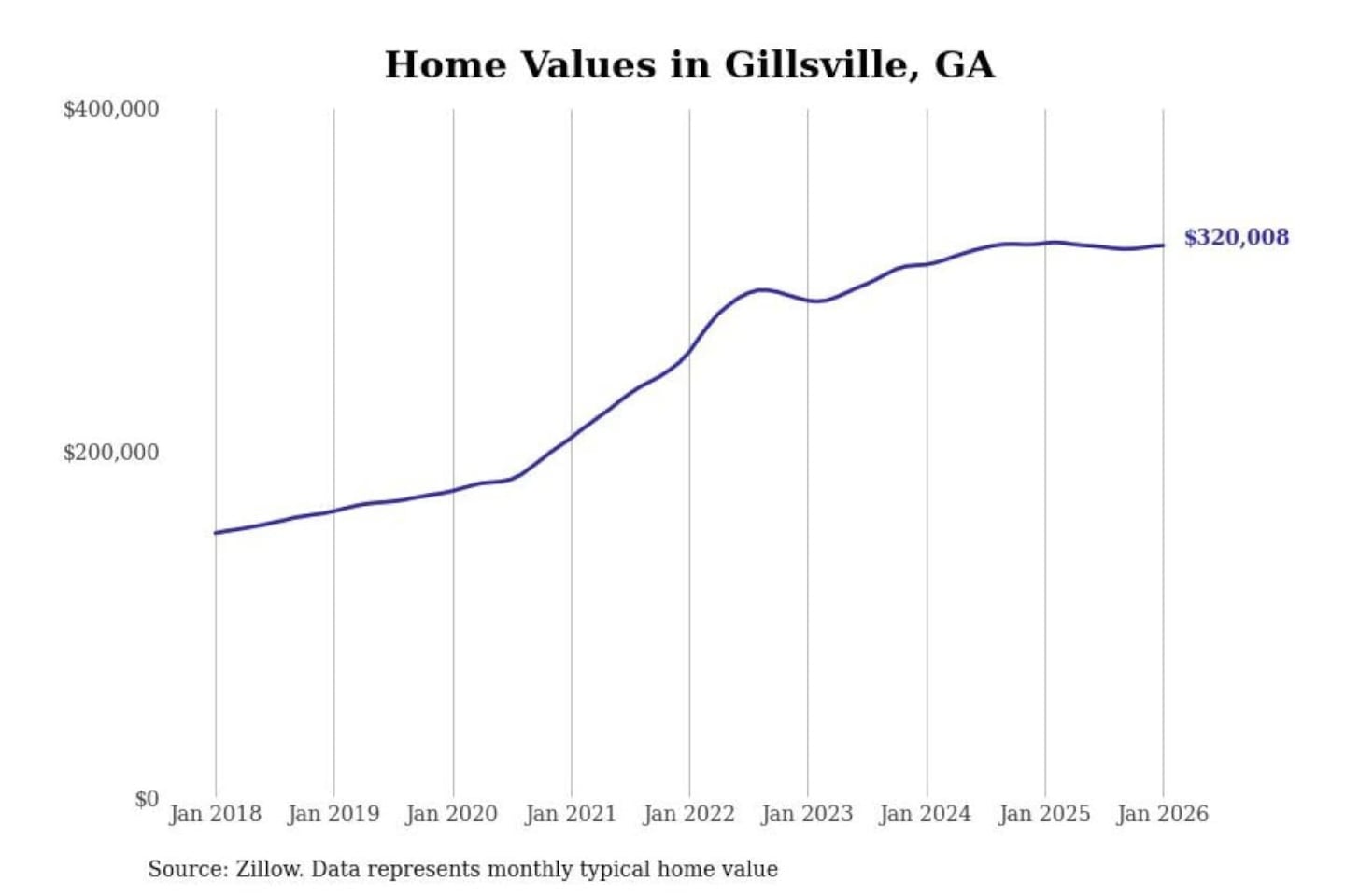 - Typical home value: $320,008