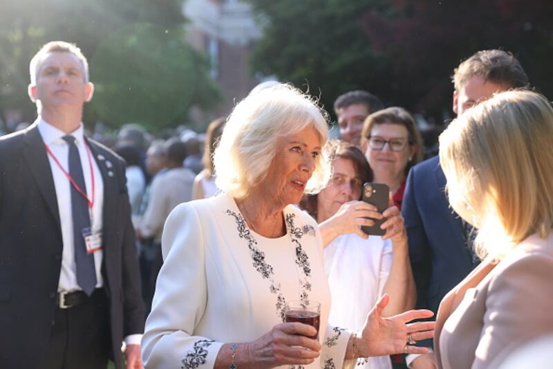 King Charles III And Queen Camilla State Visit Continues In Washington DC WASHINGTON, DC - APRIL 28: Queen Camila, King Charles III, U.S. President Donald Trump, and first lady Melania Trump pose during a state arrival ceremony on the South Lawn of the White House on April 28, 2026, in Washington, DC. President Trump and King Charles III will participate in a number of activities including a bilateral meeting in the Oval Office, with the king later addressing a joint meeting of the United States Congress. (Photo by Chip Somodevilla/Getty Images) (Chip Somodevilla/Getty Images)